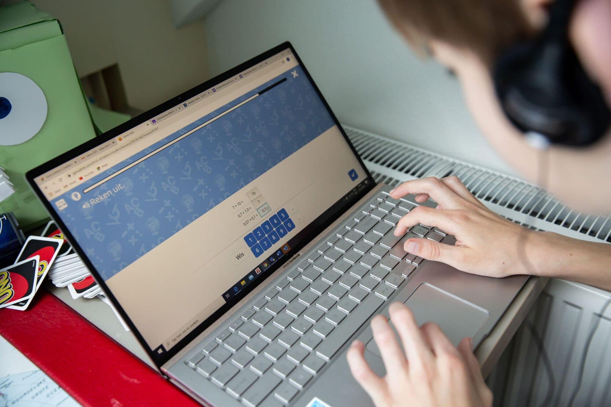 Docenten kunnen meekijken met de leerlingen, volgens de school via een meekijkmodule, maar volgens de vader via een webcam. Volgens de school gebeurt het meekijken alleen tijdens schooltijden, maar volgens de vader kan de school dat ook doen na de lessen.